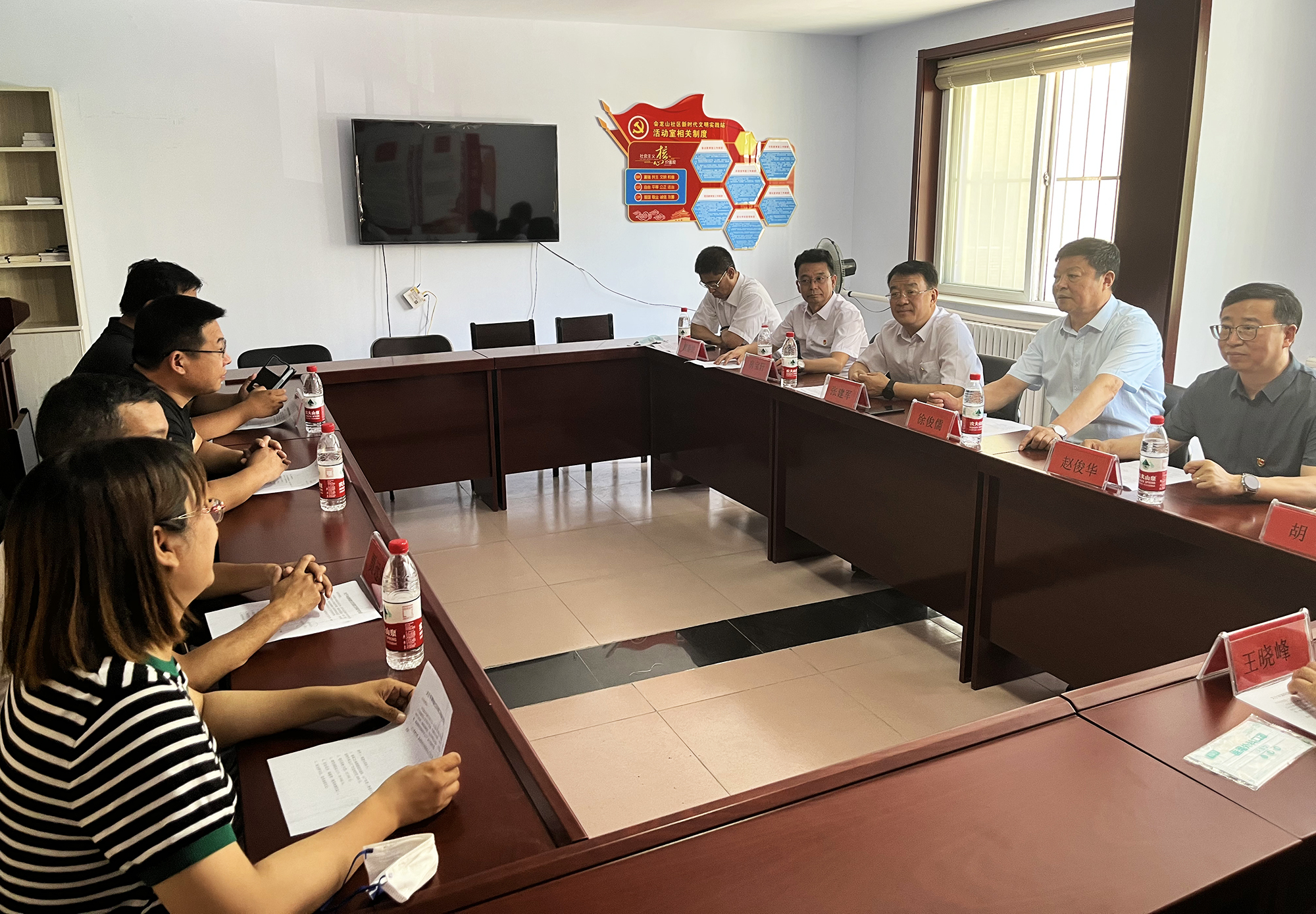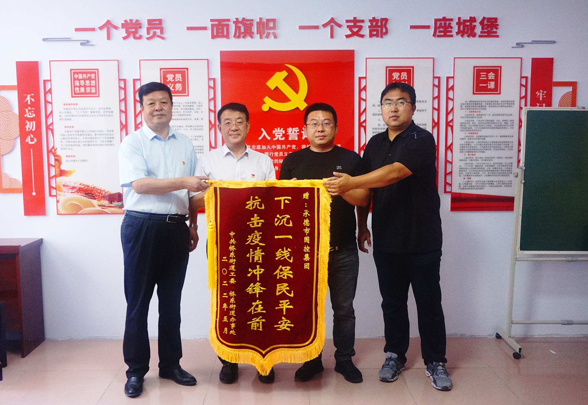 捐赠仪式后,半岛线上官网领导班子与桥东街道、会龙山社区主要负责人,就结对帮建工作进行座谈,详细了解了创城工作开展情况、存在问题及下一步打算,针对社区基础设施不完善、公共停车泊位施划不合理、楼道杂乱和小广告乱贴等问题,研究制定了具体举措。会上,为感谢半岛线上官网在抗击疫情和结对帮建工作中的大力支持,桥东街道、会龙山社区向集团公司赠送了“下沉一线保民平安、抗击疫情冲锋在前”锦旗。